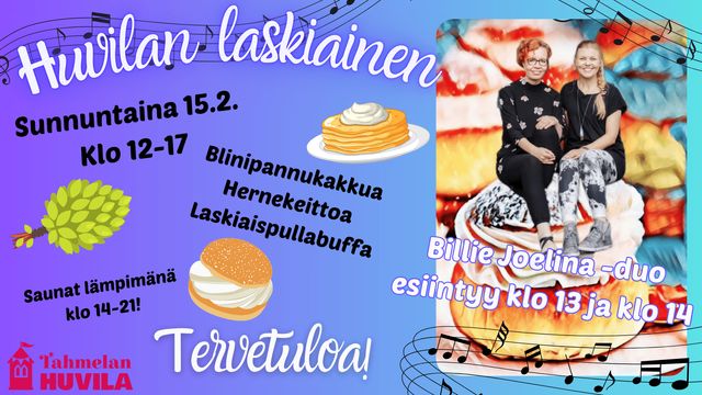 Pony rides 11-15 (10€). Horse-drawn carriage rides 12.15-16 (5/10€). Riesa-Pelle at 12 & 14. Alpacas at 12-15. Peas from the Soppaty gun, grilled sausage, warm drinks, Laskiais buns. Sales stalls.
