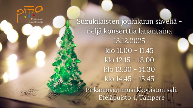 The Suzuki players from the Pirkanmaa Music Institute are anticipating Christmas with music! Violinists, cellists, pianists and singers will perform.