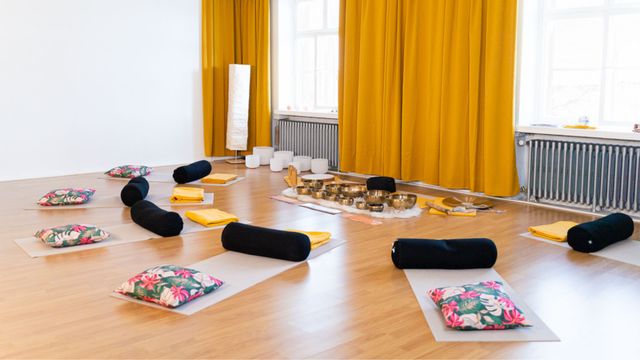 Vilttien alla lepäiltävä äänirentoutus - saa nukahtaa! Paikan päältä löytyy matot, viltit, bolsterit sekä sohva ja tuoleja. Valitse itsellesi mukavin lepoasento.
