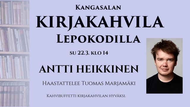 Kangasalan Kirjakahvilan maaliskuun vieraaksi saapuu kirjailija Antti Heikkinen. Tuottelias kirjoittaja on viime vuosina julkaissut muun muassa komeat elämäkerrat Pirkanmaalla vahvasti vaikuttaneista