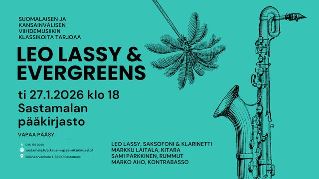 Leo Lassy & Evergreens tarjoaa suomalaisen ja kansainvälisen viihdemusiikin klassikoita Sastamalan kirjaston Musiikkiklubissa.