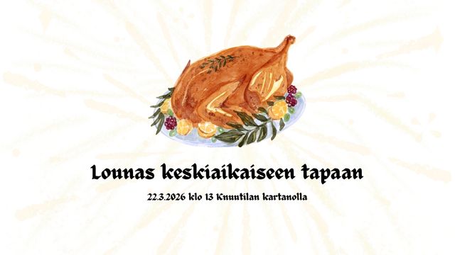 Lounas keskiaikaiseen tapaan Knuutilan kartanon väenpirtissä 22.3.2026 klo 13.